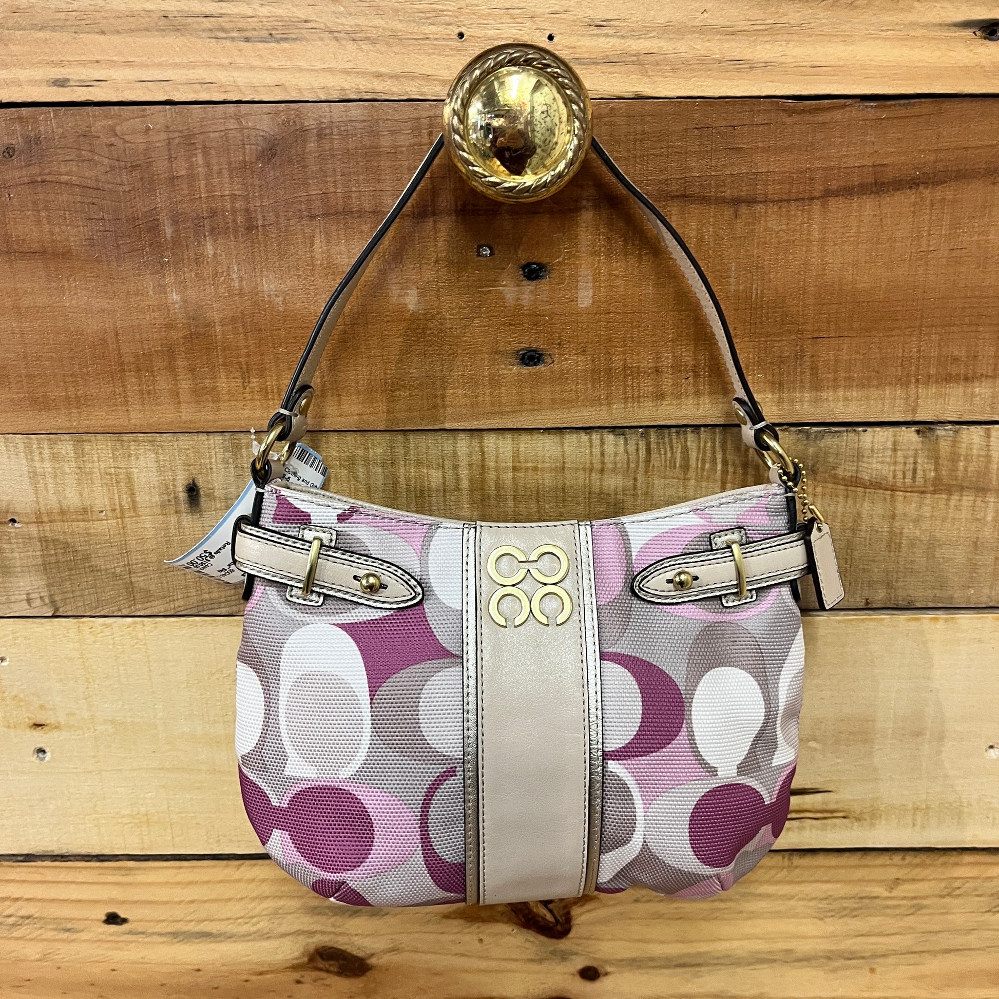 Beige, Pink, and White "Colette" Sig Print Hobo
