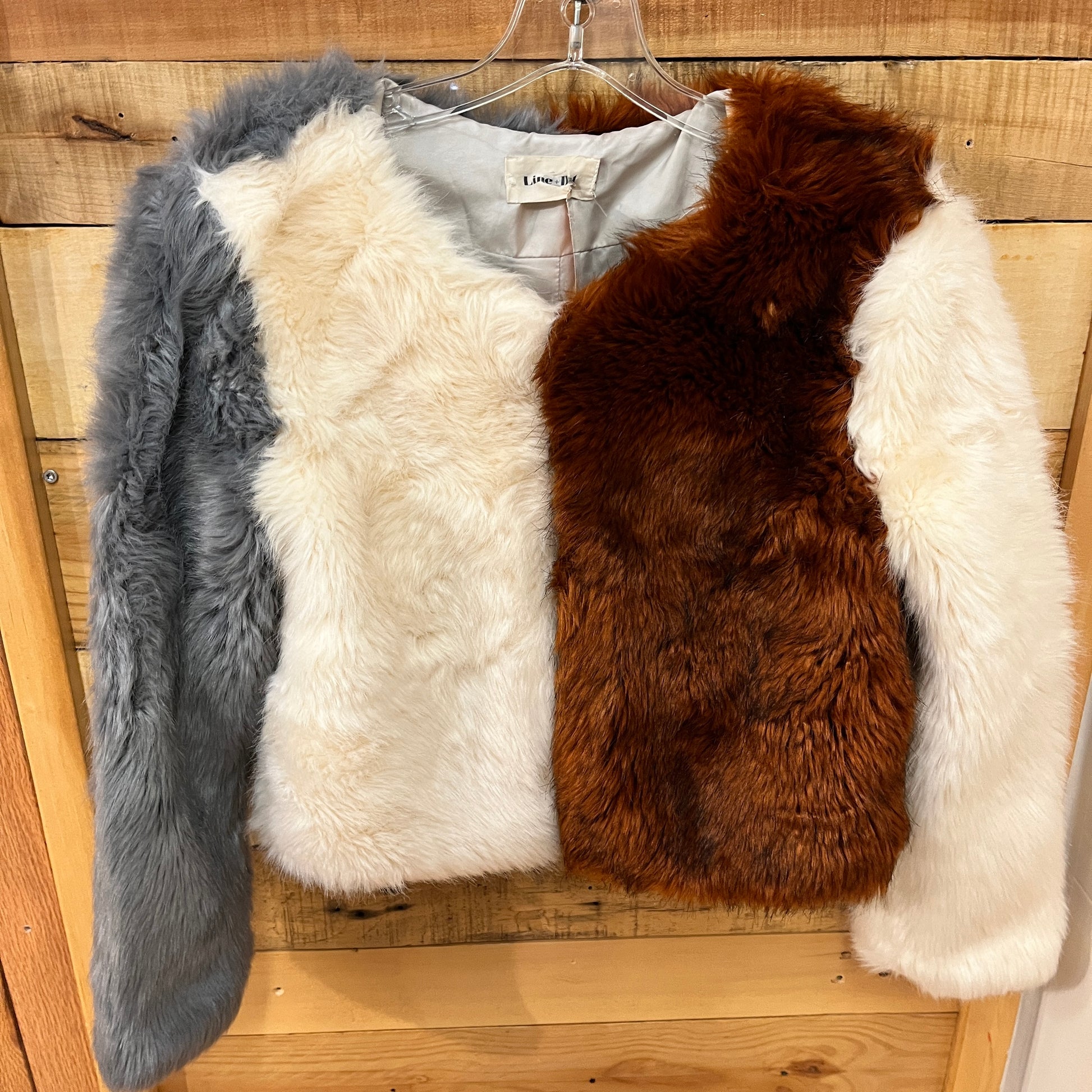 Line + Dot, grey/white/orange faux fur